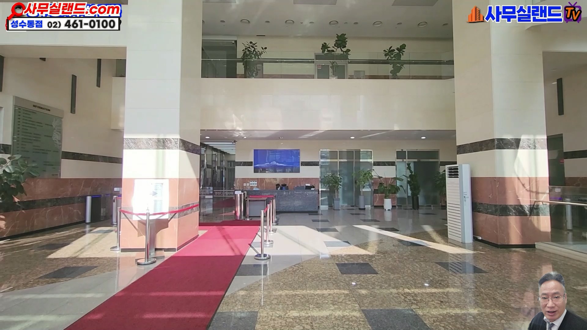 강남의 빌딩 로비를 연상할 수 있는 사진입니다.
