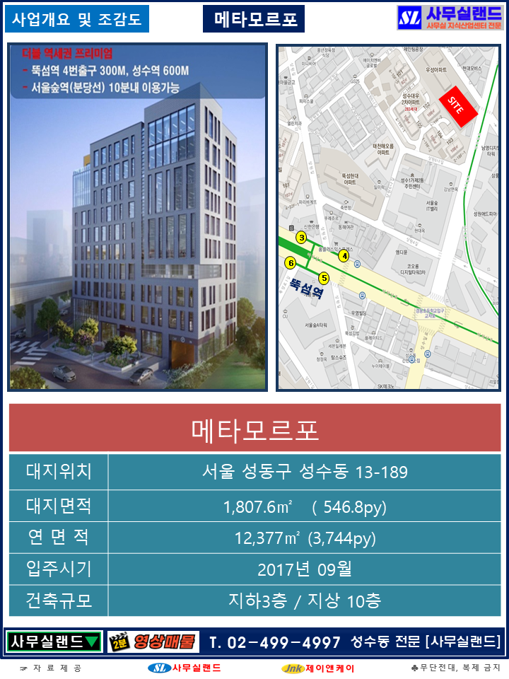 뚝섬역 [15] 대지 2,996㎡ 906.29평 / 건축 1,376㎡ 416.24평 / 연 25,630.75㎡ 7,753.3019평